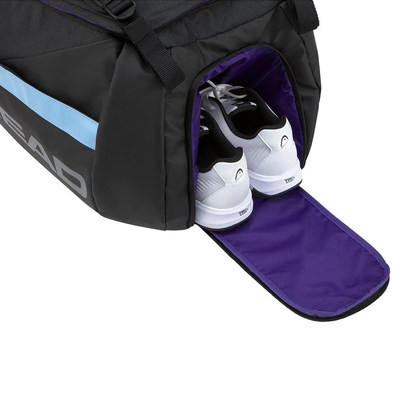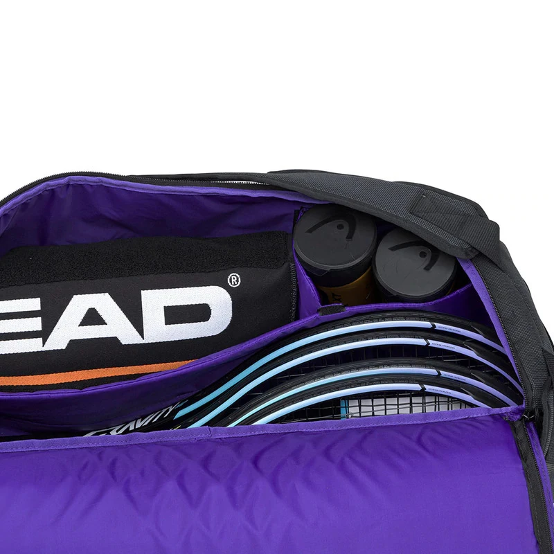 Slightly smaller than the GRAVITY R-PET DUFFLE BAG, the GRAVITY R-PET SPORT BAG has adjustable dividers that attach to the clothes-friendly Velcro straps inside. There is space for up to six racquets, an integrated shoe bag, and a number of inside and outside accessory pockets for all your belongings. With its adjustable backpack straps, the GRAVITY R-PET SPORT BAG is a highly functional bag. The GRAVITY R-PET SPORT BAG is an illustration of how HEAD recognizes its responsibility to be more sustainable and to help protect the planet, with the hangtag made from recycled paper and tied with hemp cord.