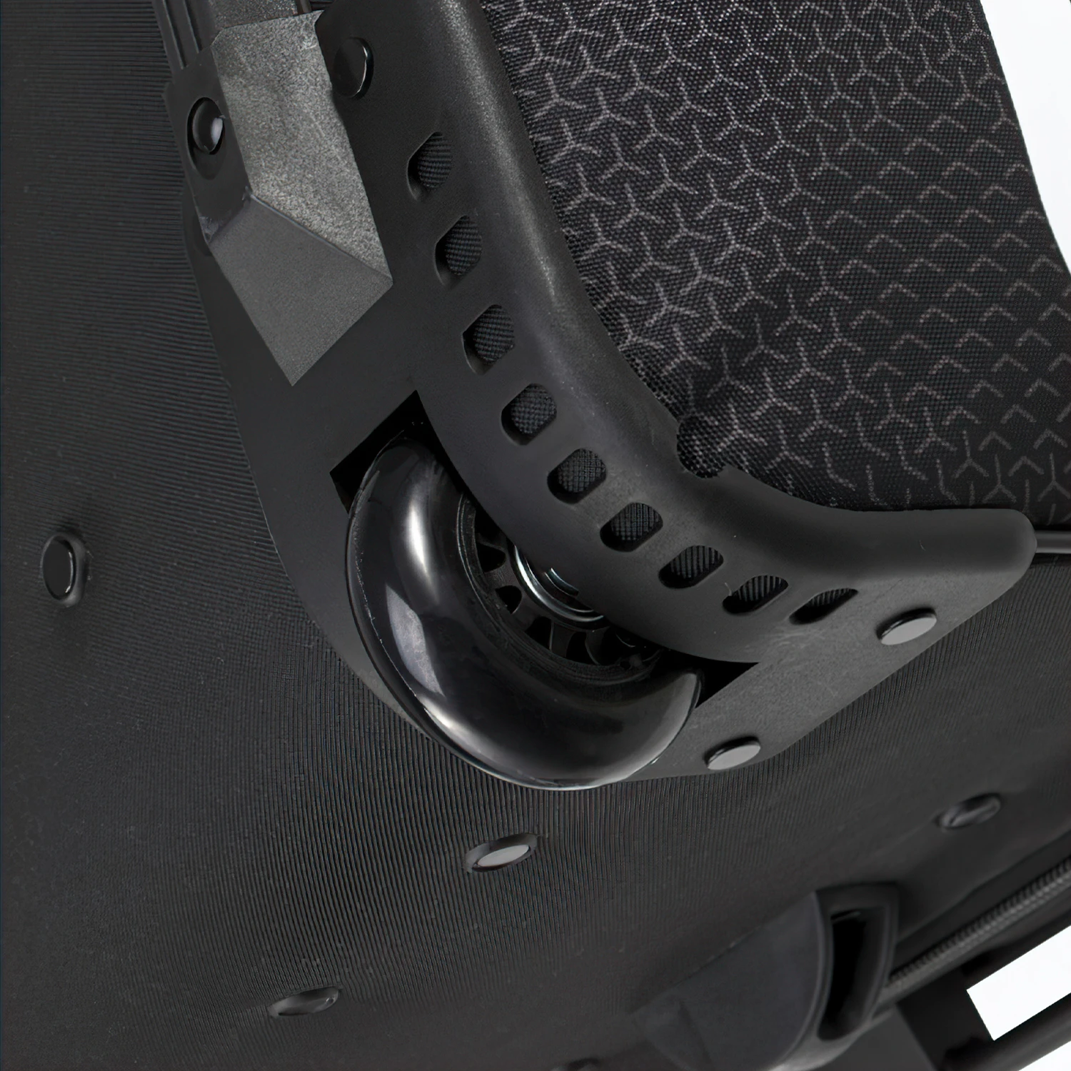 - Rigid bottom with wheels and removable telescopic handle for easy towing