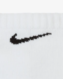 Power through your workout with the Nike Everyday Cushioned Socks. The thick terry sole gives you extra comfort for foot drills and lifts, while a ribbed arch band wraps your midfoot for a supportive feel.