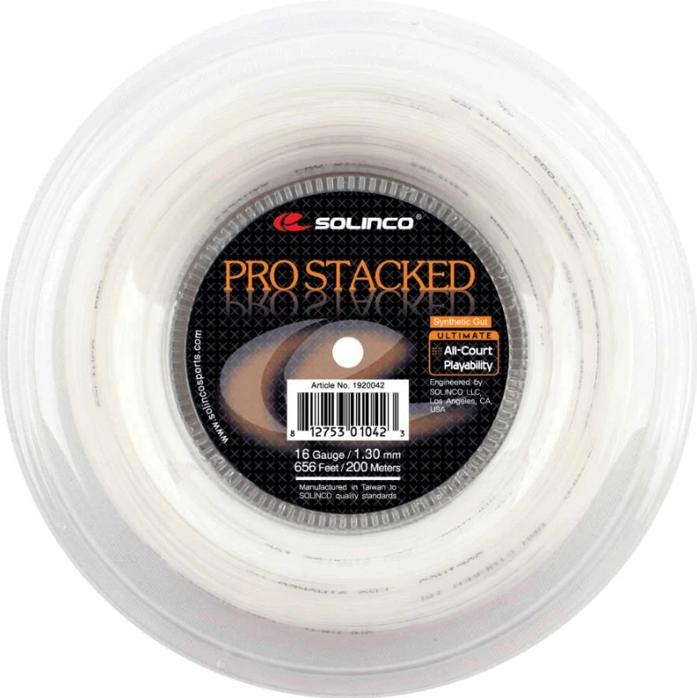 Solinco’s Pro Stacked is an enhanced, high performance synthetic gut spring offering unbeatable all-around playability with added feel and durability. Features a newly developed central power-core encapsulated by high performance, responsive multifibers to offer a versatile combination for all-court play.