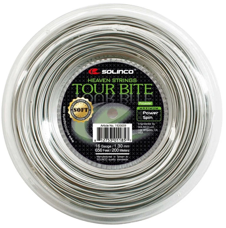 Solinco’s Tour Bite Soft is a softer high-performance and versatile polyester designed to offer more comfort while still generating extreme power and intense spin and bite. Utilizes a newly developed softening chemical composition with the high-powered polyester monofilament fibre designed and shaped to generate maximum power while amplifying the spin and bite intensity of the ball.