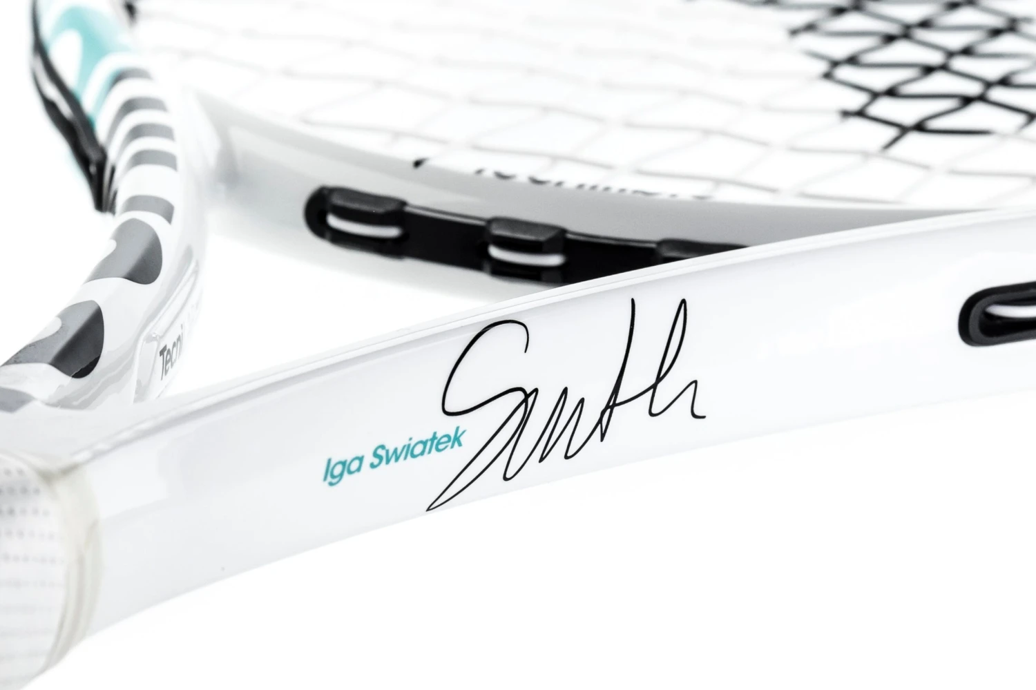 WTA revelation and winner of Roland Garros in 2020, Iga Swiatek joined the Tecnifibre team in January 2021. She tested, chose and signed her name for the Tempo 298 tennis racket. It was created to bring speed and controlled power for demanding tennis players. The “eli-square” frame section provides a good compromise of power and control. It is completed with inserts of XTC fiber, polyester and aluminum filaments to disperse the shocks at ball impact and promote better sensations. The Tempo 298 tennis racket from Iga has been developed to measure: all the technical characteristics (weight 298g, head size 630cm², balance 320mm, grip…) have been optimized on the ground with it in order to obtain the perfect speed of swing in all situations. Also, with the attention to detail she shows, Iga wanted to personalize the cosmetics of the product with a glossy finish and signed the frame for approval.